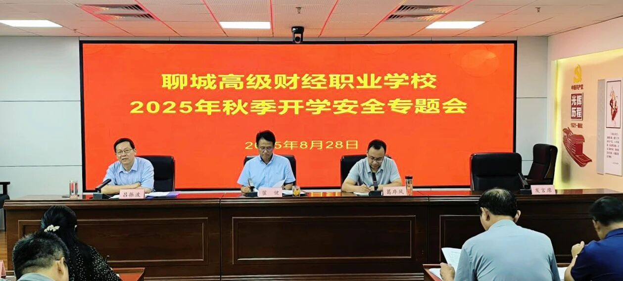 保卫处负责人汇报了学校2025年度春季学期安全工作情况,解读了《聊城高级财经职业学校2025年秋季学期安全管理工作要点》,并作出具体安排。