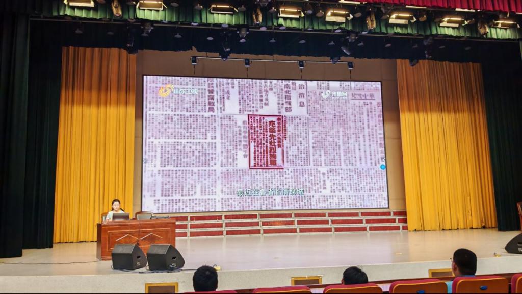 王凤娟代表研究院向学校捐赠红色文史书籍三十套,学校团委负责人代表学校接受捐赠并致谢。市委党史研究院宣传教育科一级科员李海晗作了题为《英雄的聊城——聊城抗战历史故事分享》的专题宣讲。通过一个个感人至深、振奋人心的历史故事,生动再现了聊城英雄儿女在抗战时期的坚定信念与牺牲精神,深深打动了现场师生,现场不时响起热烈掌声。