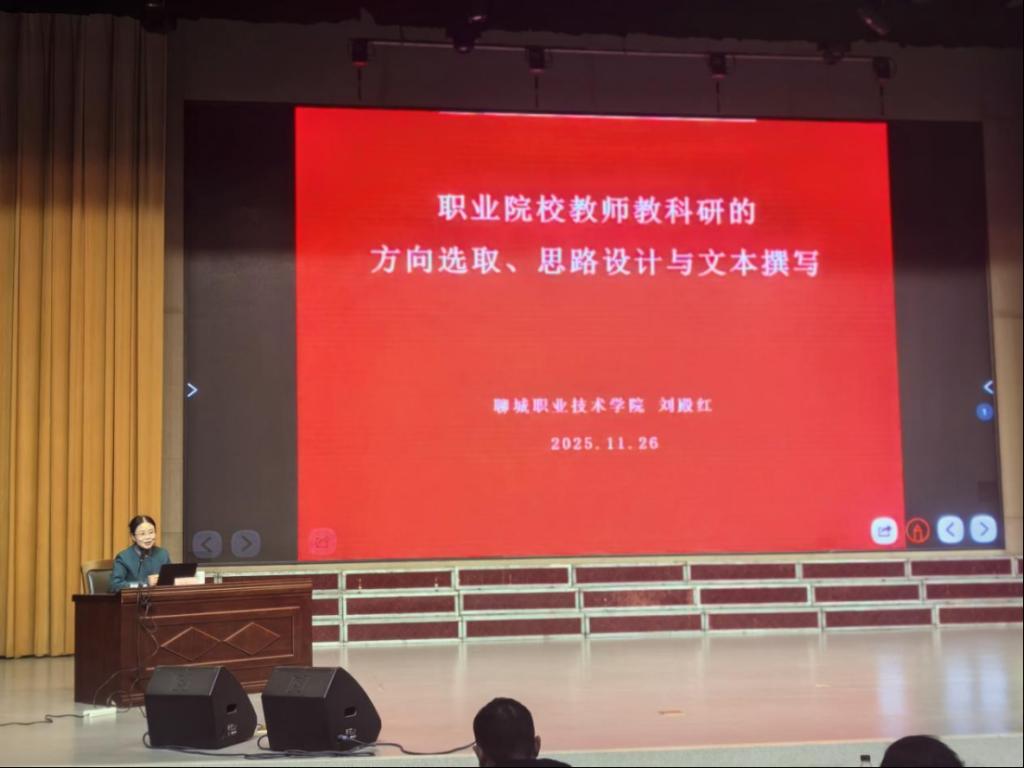 为切实提升党员、教师的教科研水平,推动学校内涵式发展,11月26日下午,学校教科研能力提升培训在学术报告厅举行。本次培训特邀聊城职业技术学院三级教授刘殿红担任主讲,党委书记翟健、党委副书记、校长葛序风及全体党员和专兼职教师参加了学习。