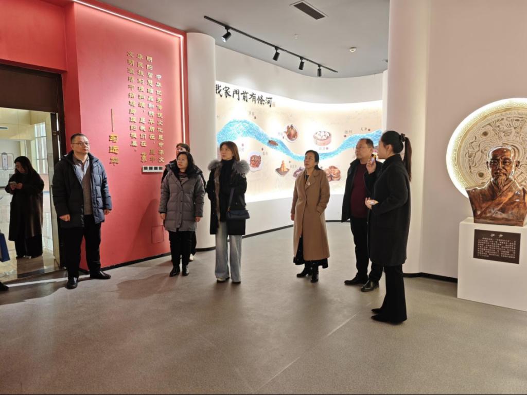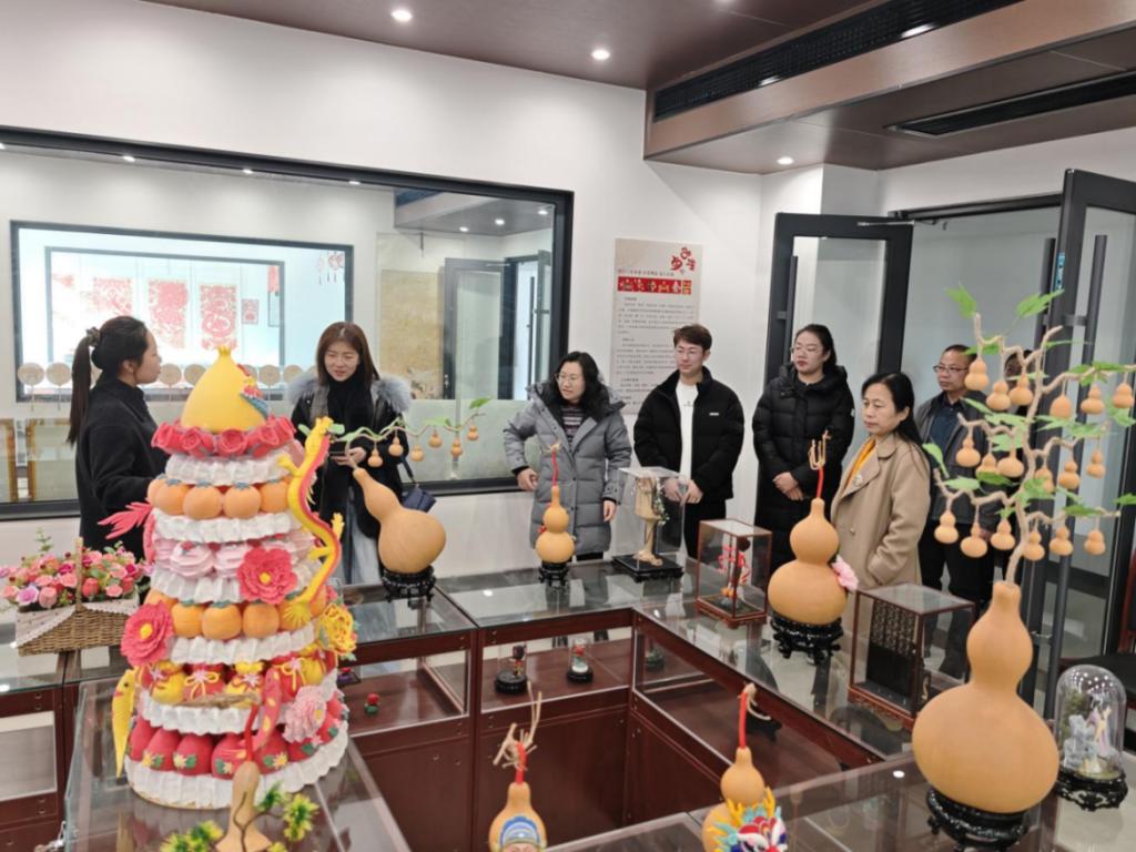 刁素一行首先赴餐旅系实地考察,先后走访运河文化博物馆、高文平创新工作室及烹饪、酒管、面点等学生实训室,详细了解实训场地布局、设备配置及学生实训开展情况;随后参观学校非遗展厅,深入交流非遗文化传承与专业教育融合的探索成果。