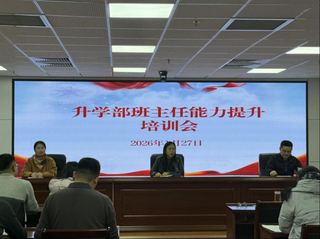 为夯实班主任专业素养,提升班级管理实效,破解育人难点,1月27日,升学部在汇智楼8楼会议室召开班主任能力提升培训会。学校党委委员、副校长王春红,学生处负责人参会,升学部负责人主持会议。