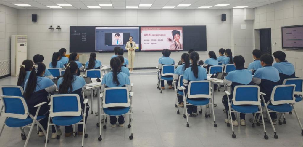此次示范课以“气质”为主题,紧密对接旅游服务与管理(高星级饭店运营与管理方向)核心技能要求。餐旅系教师王淑娟凭借扎实的专业功底、生动的教学语言和创新的教学设计,通过腾讯会议平台向参会师生呈现了高质量课堂。教学中,她以旅游服务岗位需求为导向,结合学生对经典名著角色的熟悉度,将抽象气质理论与鲜活人物形象相结合,通过“情境导入—探究辨析—游戏巩固—实战应用”的路径,让学生在沉浸式体验中理解气质类型核心特质、掌握不同气质类型旅游者接待技巧,实现“理论认知—技能提升—素养养成”三维目标。