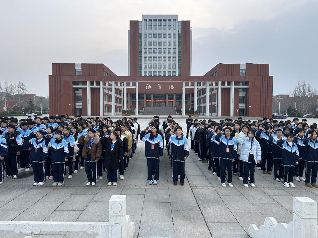 晨光之中,全体师生精神抖擞、列队整齐。伴随着雄壮嘹亮的《义勇军进行曲》,五星红旗冉冉升起、迎风飘扬。全体师生肃立注目,爱国之情与民族自豪感在心中激荡。