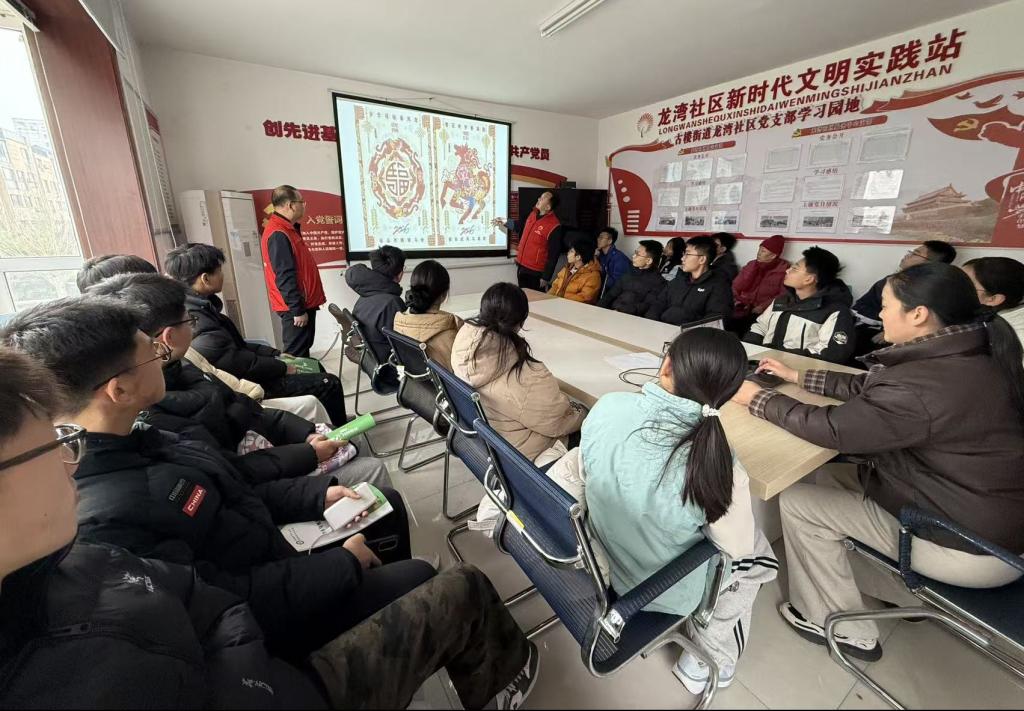 为深入学习贯彻习近平新时代中国特色社会主义思想,弘扬中华优秀传统文化,深化校社共建融合,丰富社区居民、师生党员文化生活,营造喜庆、文明、祥和的节日氛围,商贸系党支部联合龙湾社区于2月25日下午在古楼街道龙湾社区新时代文明实践站成功开展了“我们的节日 春节赏年画过大年”主题党日活动。本次活动以年画为媒,将传统文化、节日习俗与党建引领有机结合,切实推动文化惠民、校社同心。