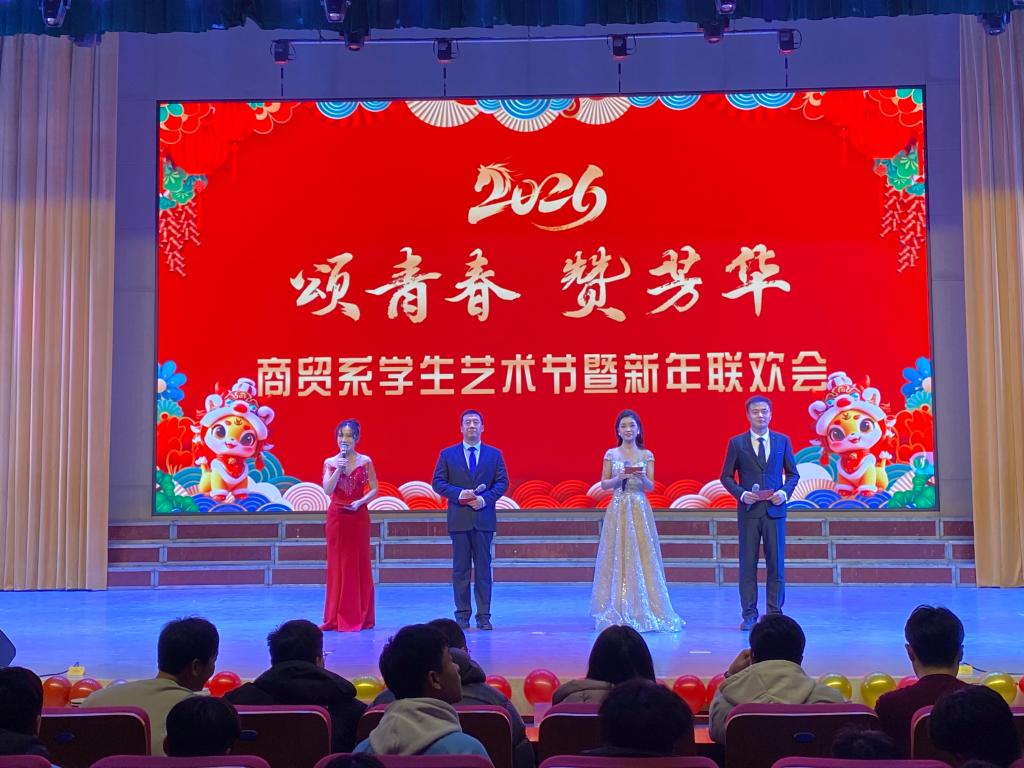 为喜迎新年、展师生风采、凝奋进力量,12月19日下午,商贸系在学术报告厅隆重举办学生艺术节暨新年联欢会。全体师生欢聚一堂,以歌舞、小品、朗诵等多元形式辞旧迎新,唱响青春奋斗之歌,为系部校园文化建设绘就浓墨重彩的一笔。