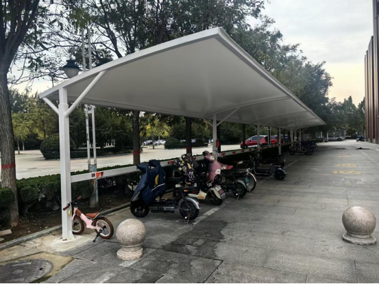 新建的风雨车棚不仅为教职工的车辆遮风挡雨,有效延长车辆使用寿命,20个充电位更是极大缓解了充电紧张状况。这些充电桩操作便捷、安全性能高,采用智能充电系统,能实时监测充电状态,充满自动断电,确保充电过程安全无忧。