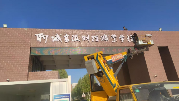 近日,为进一步提升我校形象,营造更加明亮、醒目的校门环境,总务处工作人员对我校西门处的发光校名及校门两侧高处射灯,进行了全面维修与更换工作。此次维修任务不仅技术难度大,更面临着高空作业带来的安全风险。