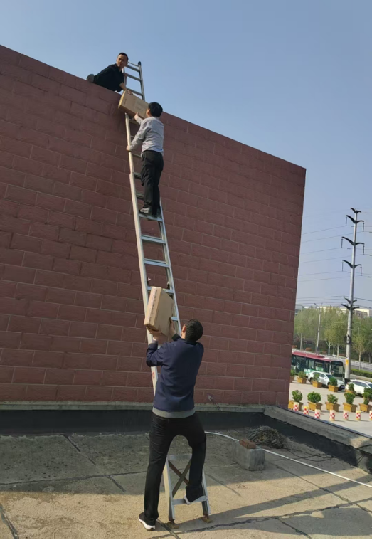 面对挑战,总务处工作人员迎难而上,他们精心制定维修方案,确保每一步操作都安全有序。确保新校名及新射灯的安装位置精准无误。整个维修工程时间紧、任务重,工作人员们顶着烈日,克服重重困难,最终在最短的时间内圆满完成了任务。