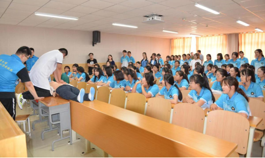 王彦还向同学们讲解了异物窒息的表现、如何预防儿童异物窒息的发生、如何实施海姆立克急救法等知识,并对“海姆立克急救法”的操作做了详细的讲解,通过现场模拟示范,同学们掌握了心肺复苏和海姆立克急救法等急救知识的技巧。
