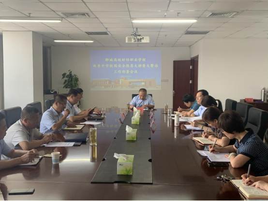 8月21日上午,学校在汇智楼九楼会议室召开秋季开学校园安全隐患大排查大整治工作部署会议,学校党委副书记、校长兼安全管理委员会主任许广元主持会议,校领导班子成员及各处室、系部负责人参加会议。