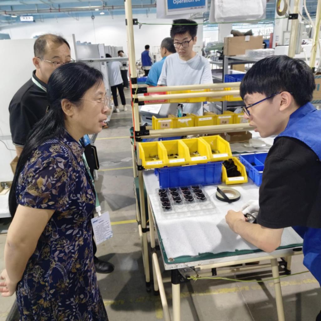 王春红前往生产车间看望实习学生,走到各岗位旁与他们亲切交流,细致询问工作适应情况与生活需求,深入了解学生们的实习状况与实际困难,并深入宿舍,了解学生的住宿条件和存在问题。