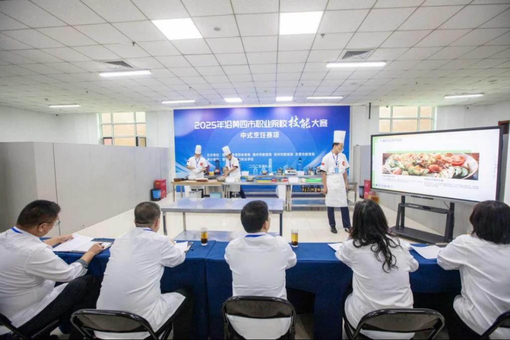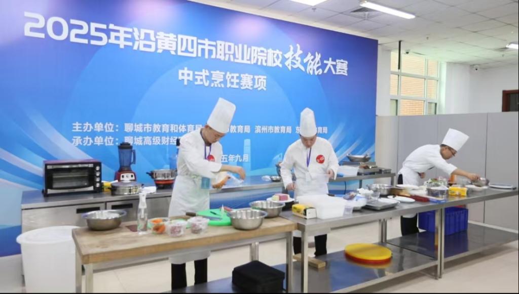 9月27日,2025年沿黄四市职业院校技能大赛中式烹饪赛项在我校举办,来自聊城、德州、滨州、东营四市的13支参赛队伍齐聚校园,在方寸灶台间比拼技艺、交流成长。聊城市教育和体育局职业教育与高等教育科科长郭忠岭等出席大赛开赛式。