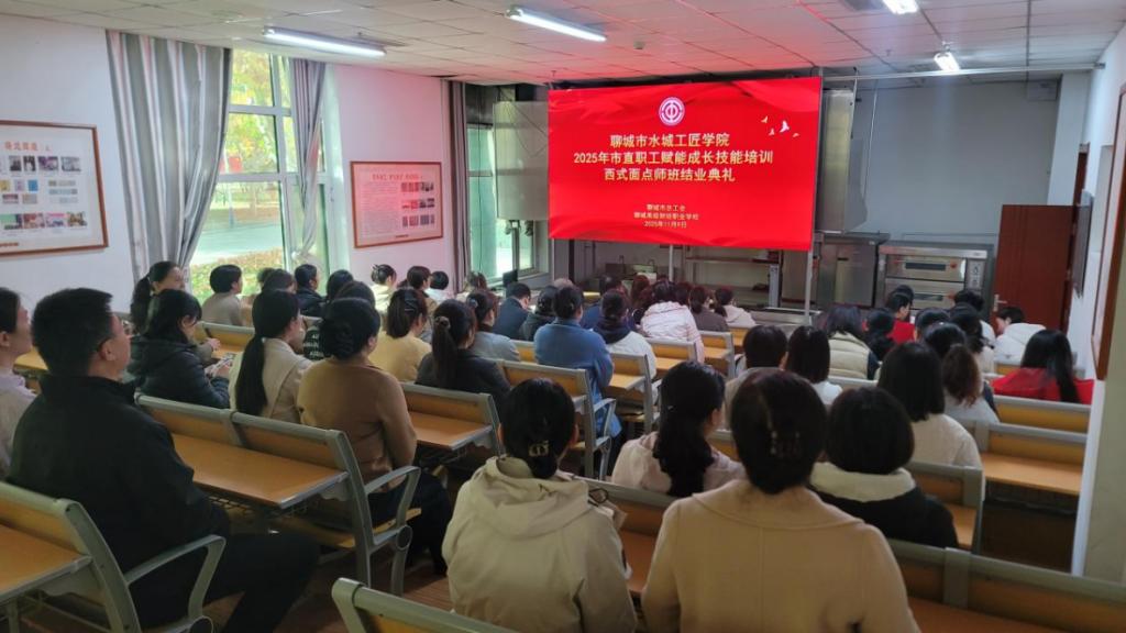 11月9日,聊城市水城工匠学校2025年市直职工赋能成长技能培训西式面点师班结业典礼在我校餐旅系教学楼成功举行。