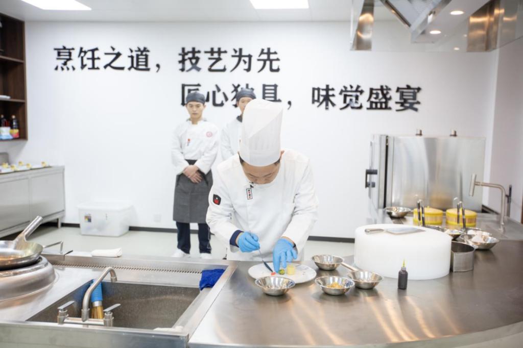在活动现场,山东省手造大工匠、齐鲁工匠高文平大师携团队成员制作了3款菜品、2款西点、2款中点、1款冷盘。高文平开展线上直播授课,进行了精彩的技艺展示。挂霜腰果,色泽洁白似霜,工艺精湛;“花香玛瑙空心丸”巧妙地将传统与现代、写意与具象相结合;清汤莲花白松鸡展现了对食材选择和火候把控的极致探寻。