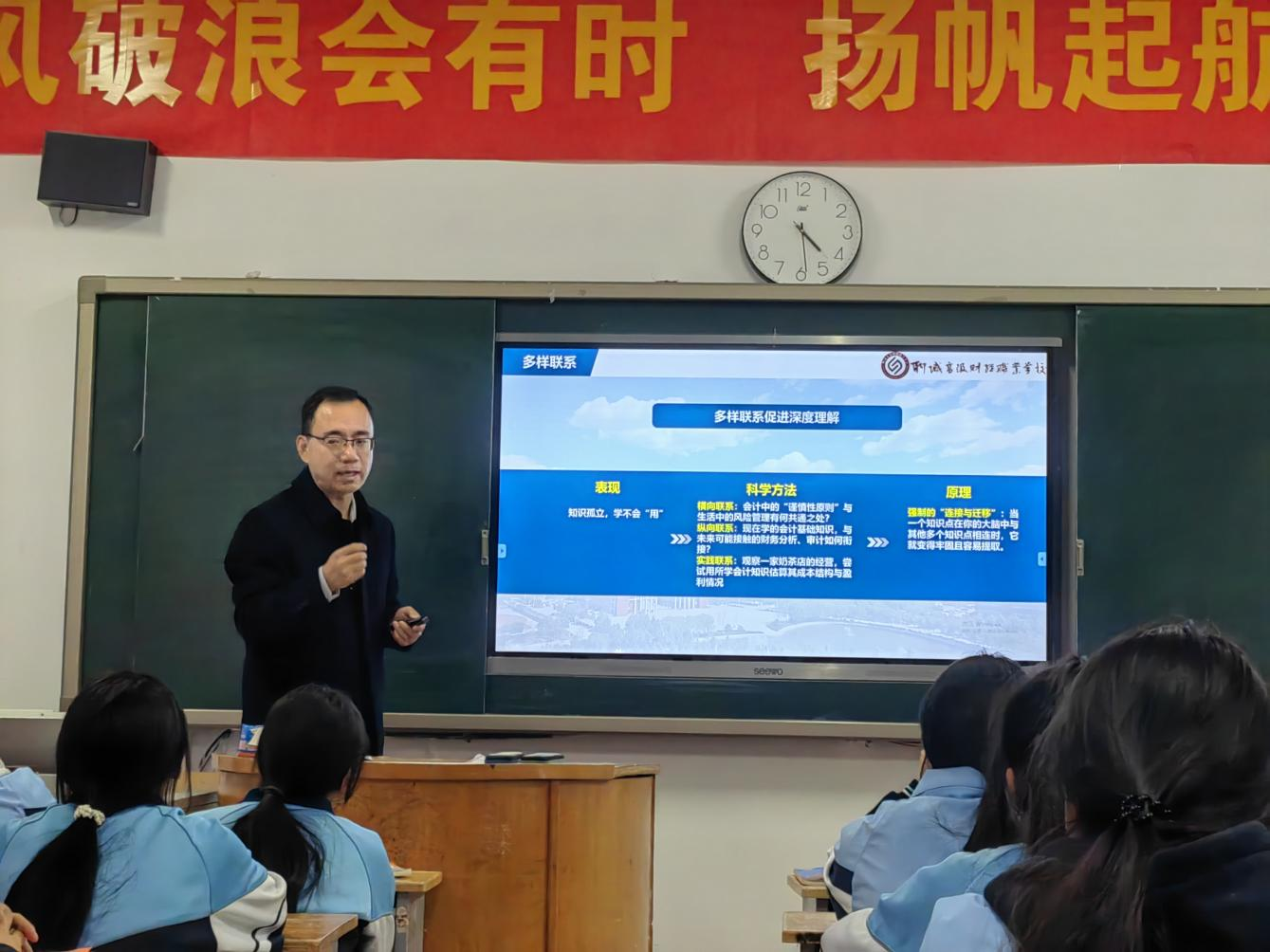 课上,葛序风以“会计行业面临的数字化转型挑战”为切入点,阐释“为什么要学习”。他指出,在大数据与人工智能深度融合的时代,会计人员从“账房先生”向“价值管理者”的转型,本质上是持续学习的过程。“唯有通过学习筑牢专业根基、拓展知识边界,才能在行业变革中把握主动。”他结合会计系优秀校友凭借持续学习实现职业突破的案例,引发学生强烈共鸣。