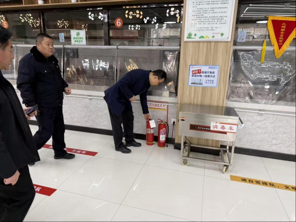 在校门及公共区域,检查组详细检查门禁系统、监控设备运行状况,了解值班值守、人员车辆登记等落实情况,要求严守校园安全第一道关口。在食堂,重点检查食材采购、储存、消毒、食品留样及燃气安全,要求严格落实食品安全责任,守护师生 “舌尖上的安全”。