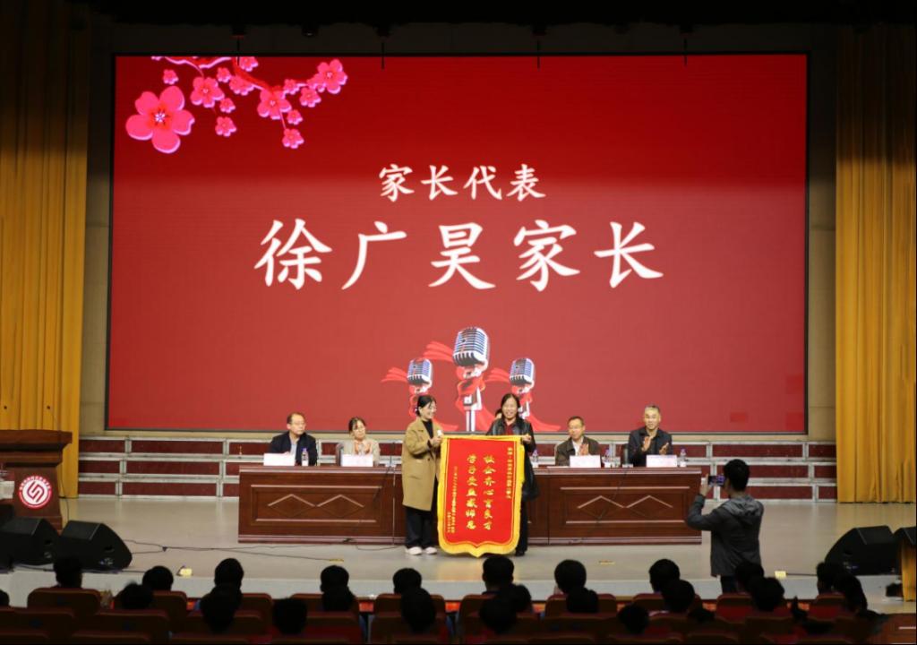 人工智能系负责人主持仪式。谷启涛首先致辞,对合作企业的大力支持表示感谢,对订单班同学的成长与进步给予充分肯定,并勉励同学们珍惜平台,锤炼本领,立志成才。在表彰环节,人工智能系学生部负责人宣读了2024级订单班获奖学生名单。企业嘉宾葛广宾、刘玉秀分别为海尔订单班与海信订单班获得奖学金的学生颁奖。学生代表随后发言,分享了在订单班学习成长的感悟,表达了对学校与企业共同培养的感激之情。家长代表也登台发言,并在发言后赠送锦旗,表达对学校育人工作的认可与感谢。企业代表葛广宾、刘玉秀,介绍了企业与学校合作的成果与未来规划,表示将继续推动产教融合,共同培养适应产业发展的高素质技术技能人才。