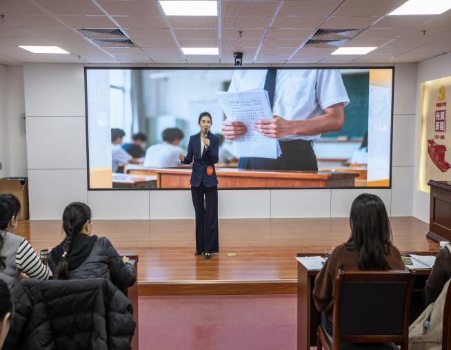 比赛现场,气氛热烈而庄重。各党支部参赛教师精神饱满,以“心有大我、至诚报国”的理想信念为魂,以“言为士则、行为世范”的道德情操为骨,或深情讲述自身躬耕教坛的坚守故事,或生动再现身边同事启智润心、因材施教的育人场景,用真挚的情感、生动的语言诠释着对教育事业的热爱与坚守。专家评委围绕宣讲内容的思想深度、语言表达的流畅度、情感传递的真挚度等维度进行专业评审,最终评选出一等奖2名、二等奖3名、三等奖5名及优秀奖若干。