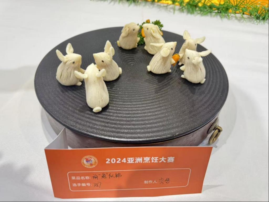 “面点之美,在于指尖分寸的拿捏,更在于心间的温度与创意。”这是李梦常对学生说的话,也是她自身技艺追求的写照。自2013年踏上讲台,她从未停止对专业技能的钻研与精进。从荣获山东省“技能兴鲁”职业技能大赛中式面点金奖,到2020年中餐烹饪世界锦标赛上勇夺专业组铜奖,再到2024年凭借作品“前兔似锦”斩获亚洲烹饪大赛亚洲金奖,她的每一步攀登,都伴随着无数个在操作台前反复揉捏、蒸制、雕琢的日夜。