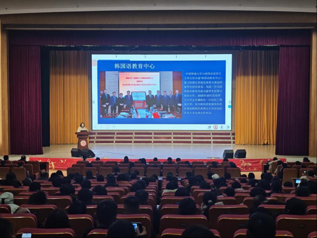 作为我校深度合作院校,韩国忠南国立大学自2024年起与我校共建“3+4 本科国际贯通班”,2025年10月更授予我校“留学教育基地”称号,合作持续深化。宣讲中,杨红静重点介绍了两校联合韩国语教育中心的培训项目,该项目依托优质师资提供系统化韩语教学,助力学生完成中职阶段学业后,通过语言提升直达韩国忠南国立大学攻读本科,构建“中职—国内培训—海外本科”一站式升学通道,切实提升留学适应度。