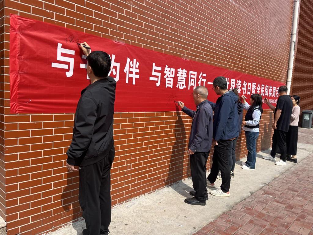 活动现场,签名横幅整齐悬挂。老师们率先上前,签下名字,用实际行动践行阅读理念,为学生们做出表率。接着,同学们有序排队,在横幅上留下自己的签名,脸上洋溢着对阅读的热爱与期待。