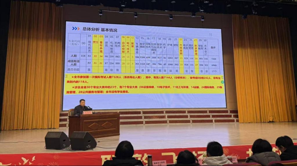研讨环节紧扣春考备考核心与教学质量提升主题,氛围热烈务实。针对春考改革、命题趋势变化及人才培养新要求,专家团队结合全市2026年春考第一次模拟考试情况,发布质量分析报告,拆解各科得分情况、学生共性问题,并针对性提出改进措施与备考建议,破解备考难题。