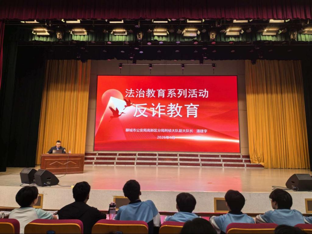 4月14日,为增强学生防范电信网络诈骗意识、提升识骗防骗能力,学校举办反诈主题教育活动,特邀聊城市公安局高新区分局刑侦大队副大队长潘建宇来校宣讲。
